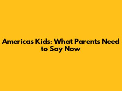 America's Kids: What Parents Need To Say Now